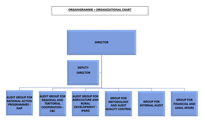 In line with the Rulebook on internal organisation and job classification which came into effect on February 3, 2024, the Governmental Audit Authority Office of EU Funds has the following internal units: